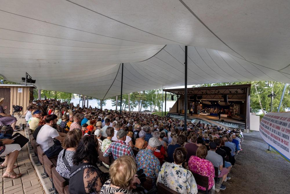 Kyllä, katsomo ja näyttämö ovat kokonaan katettuja. Kaikki paikat ovat numeroituja. Katsomon penkeissä on uudistetut selkänojat. Katsojille jaetaan omat ilmaiset käsiohjelmat, sekä myös istuinaluset lainaan esityksen ajaksi.